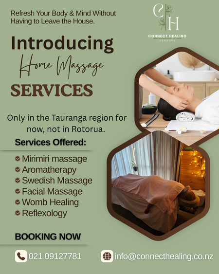 Connect Healing invites you to step away from the demands of daily life and into a space of complete tranquillity. With locations in Papamoa, we offer a holistic range of wellness services, including Mirimiri massage, Japanese Head Spa, personal coaching, and day retreats - all designed to restore balance to your body, mind, and spirit